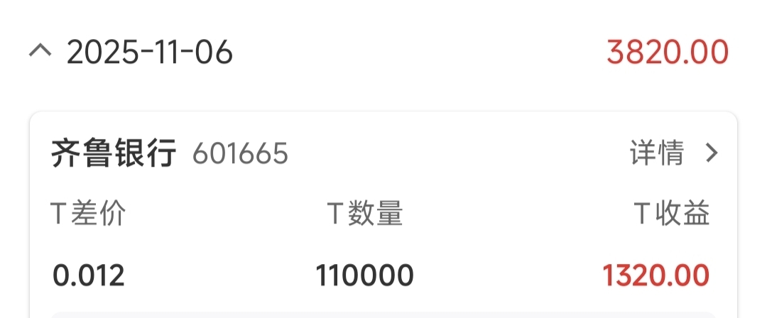 $齐鲁银行(SH601665)$ 一分钱玩一天