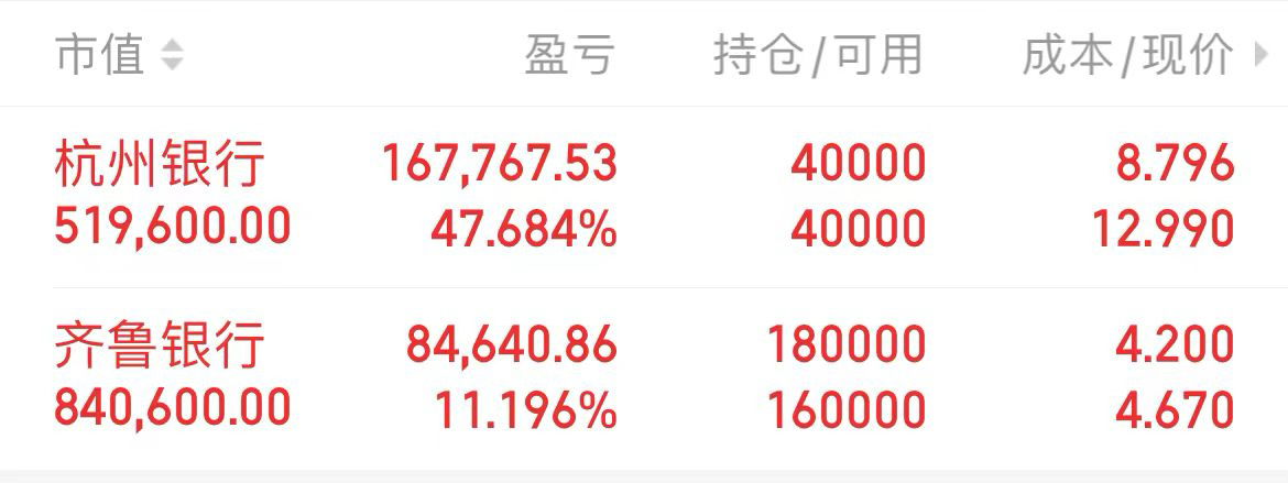 转眼间又过了一年了,想当初杭州银行12.99元时,齐鲁银行4.67元时,那时股吧