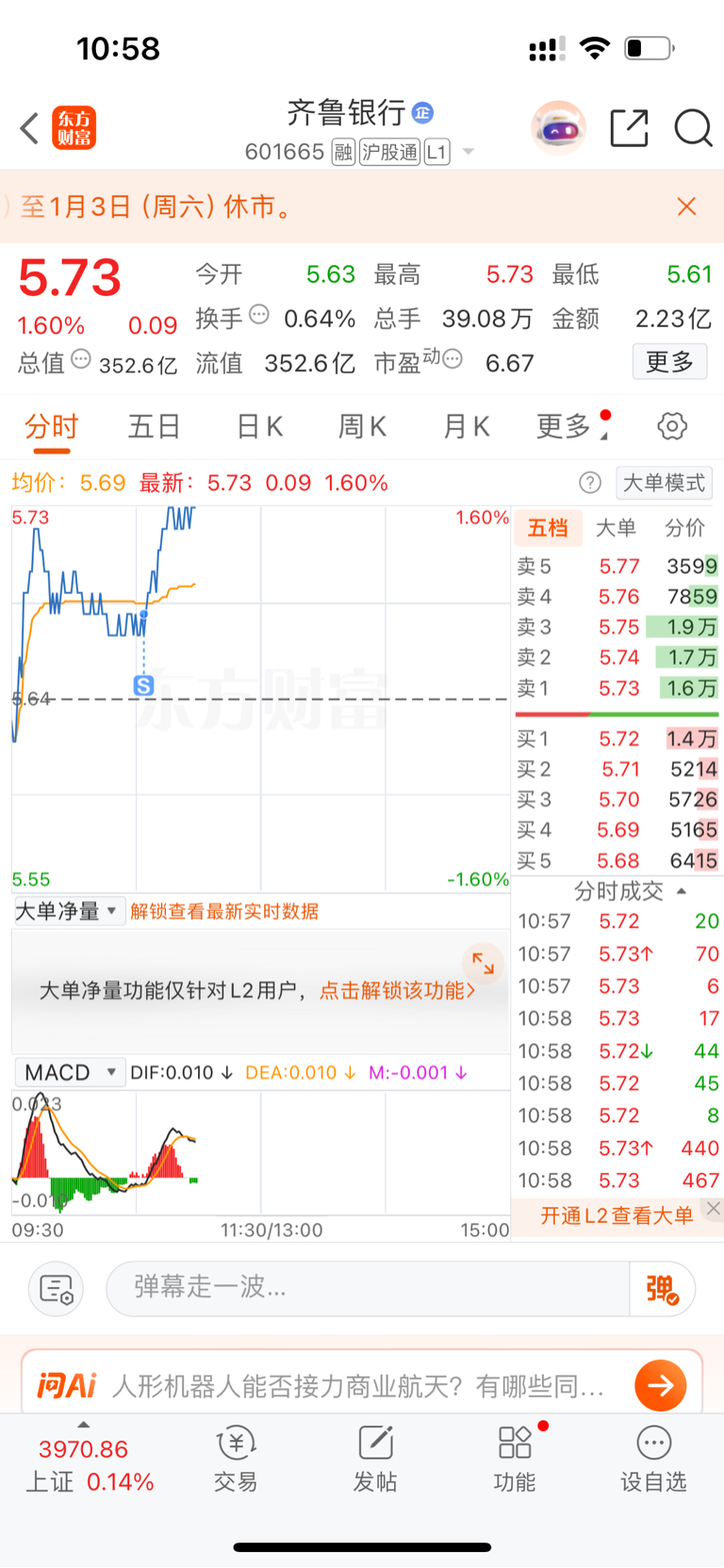 $齐鲁银行(SH601665)$ 每次都这么精准呵呵