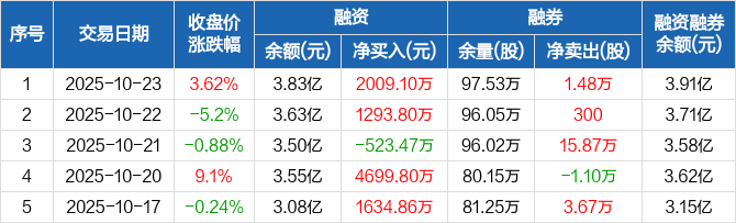 平煤股份:融资净买入2009.1万元,融资余额3.83亿元(10-23)