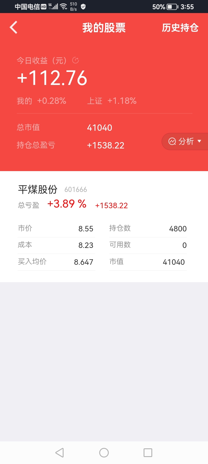 $平煤股份(SH601666)$ 10月21号买的,从最高价9块1毛一,天天做t到今天,天天跌,大盘涨,板块涨,天天跌, 你们看一下我账户上不上火?
