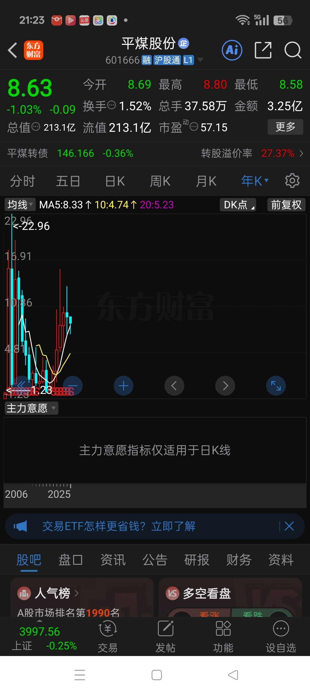 平煤去年下跌5.6,今年下跌8.7,连续下跌两年!