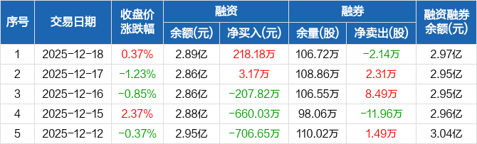 平煤股份:融资净买入218.18万元,融资余额2.89亿元(12-18)