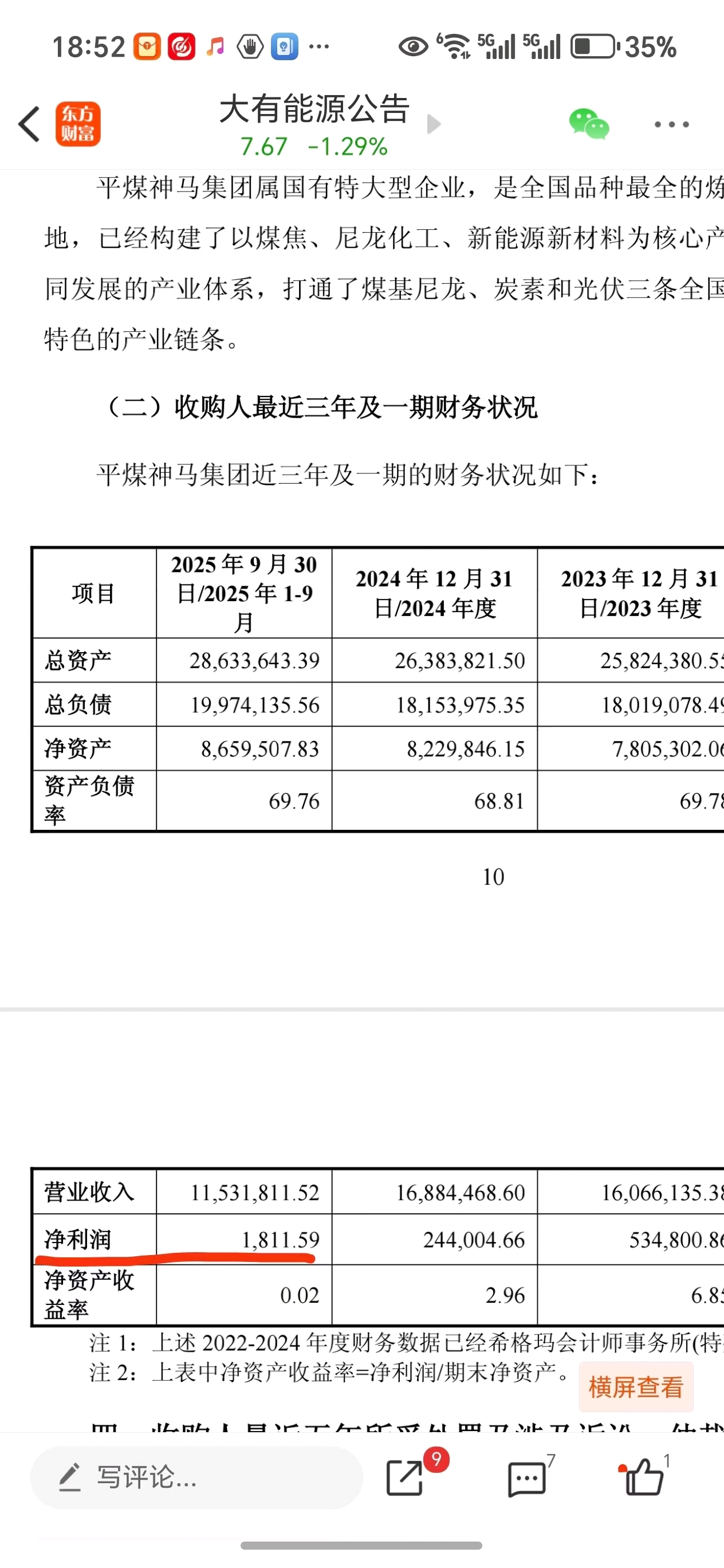 $平煤股份(SH601666)$ 大股东平煤集团2025年1-9月净利润1811万元,还可以吧,没有亏损