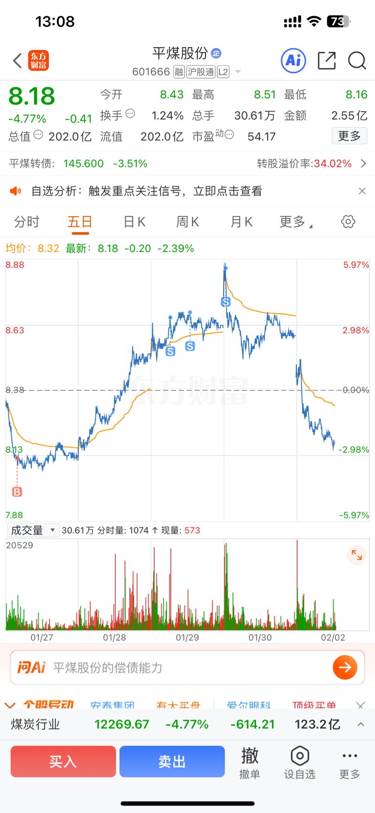 $平煤股份(SH601666)$ 涨了就要走已经屡试不爽了,等他起飞真的太难了