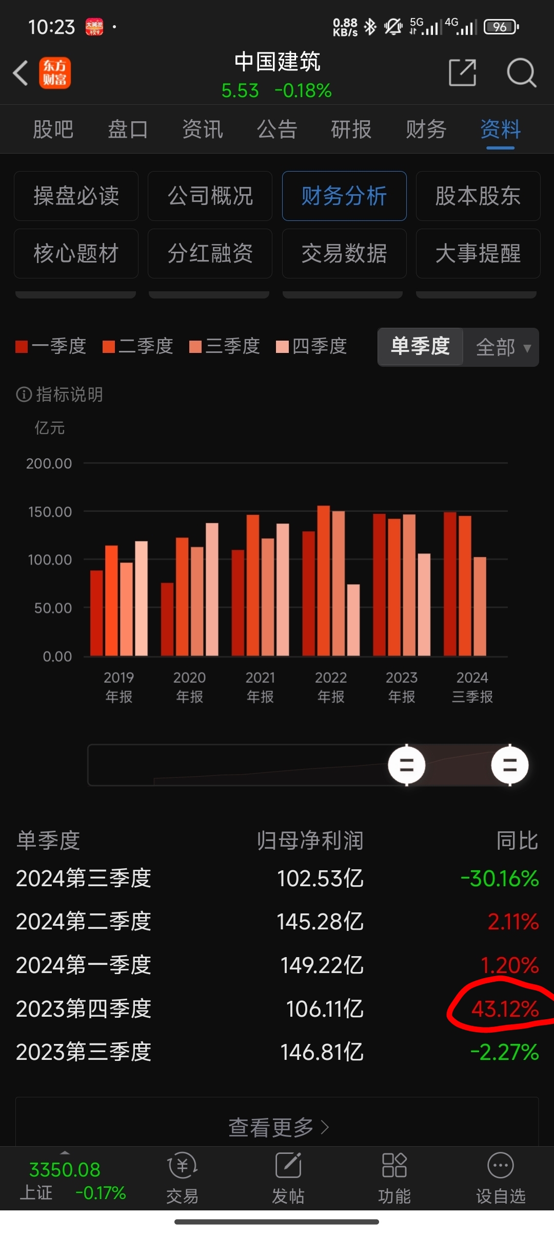 其实你会发现22、23年四季度和之前的四季度相比净利润下降很多。主要原因是计提坏账!24年三季度净利润大幅下降是因为大环境不好和中建自己减少新开工项目,至于24年四季度净利润会如何不好说。从营收上看,四季度的竣工和新开工项目都降很多,这必然导致营收和净利润下降。但从前三年对中建四季度影响最大的计提问题来考虑就很难判断四季度的业绩。因为随着化债政策的实施,中建今年四季度是否还会大额计提不好判断,还有就是化债能让中建计提回转多少往年的坏账准备?所以去年四季度的业绩如何很难预测。鉴于大股东在当前价位的增持情况,个人估计去年整体利润水平应该不会太差。可能就是上下百分之五的幅度!纯属个人YY
