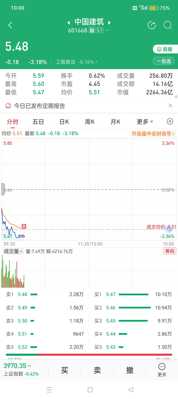 5.48元买入中国建筑。