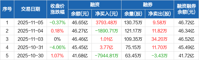 中国建筑:融资净买入3793.48万元,融资余额46.65亿元(11-05)
