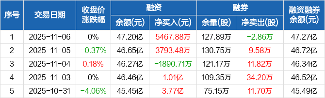 中国建筑:融资净买入5467.88万元,融资余额47.2亿元(11-06)