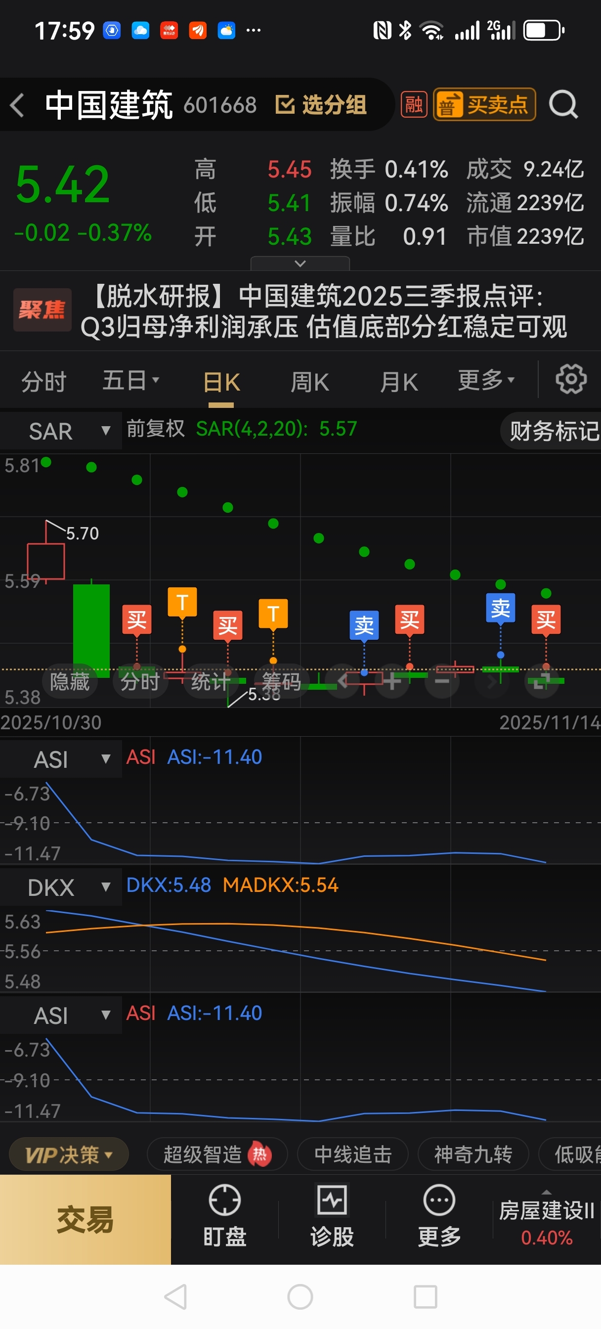 中国建筑,11月10号清仓5.44(29*68*10)13号清仓5.46(8*5