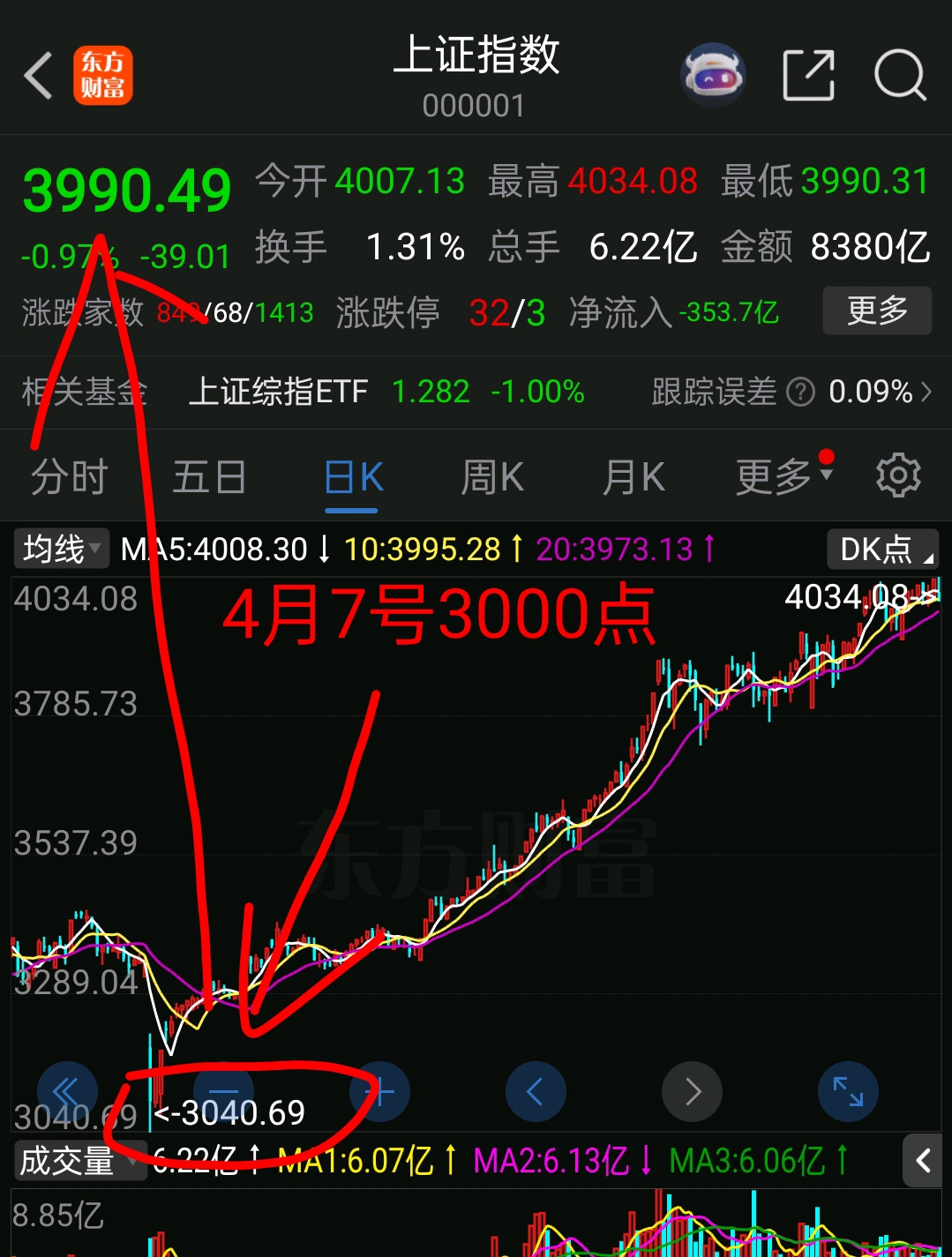 4月7号大盘3000点上涨到4000点,上涨了35%,所谓的。央。企。红。利。你却连跌4个月。