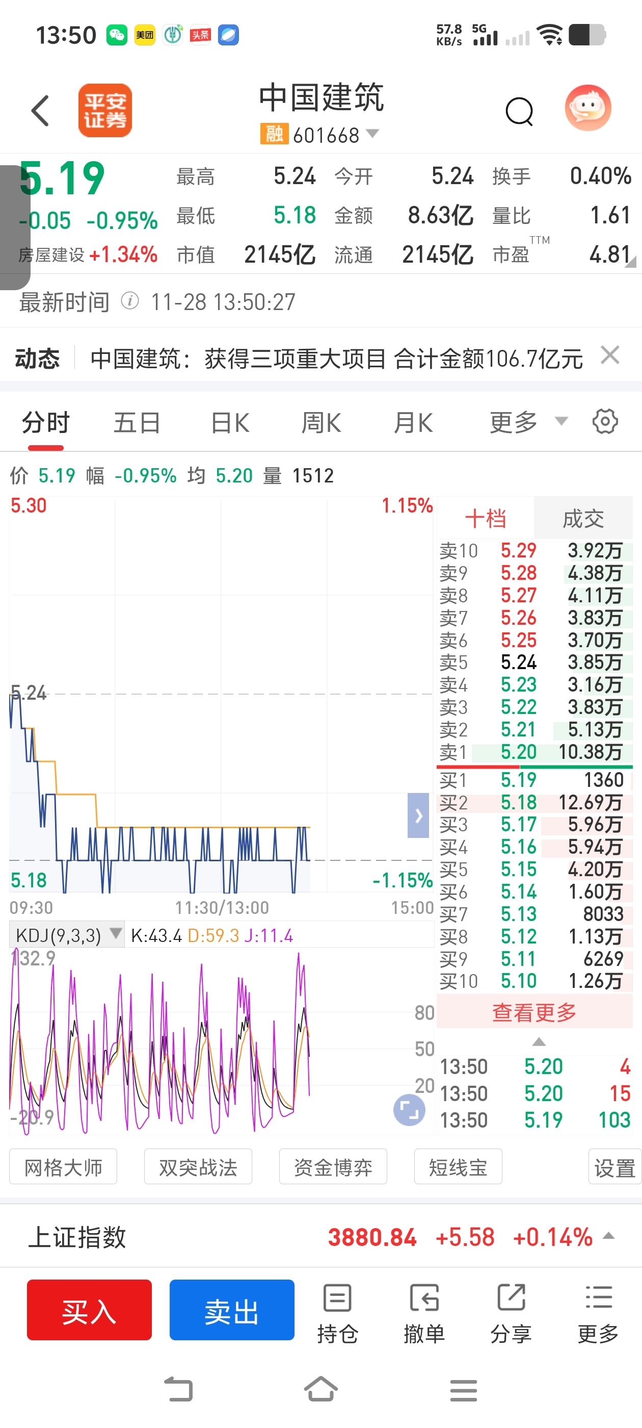 $中国建筑(SH601668)$ 。上面10万手,下面12万手。从来没有看到过这样卑鄙无耻之人,不是恶庄就是量化。