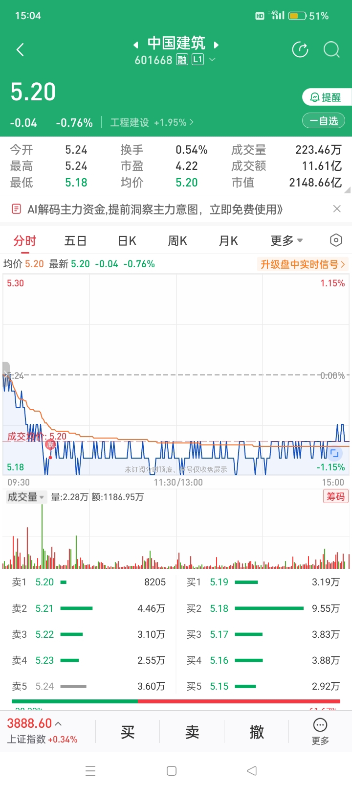 $中国建筑(SH601668)$ 5.2元加仓中国建筑。