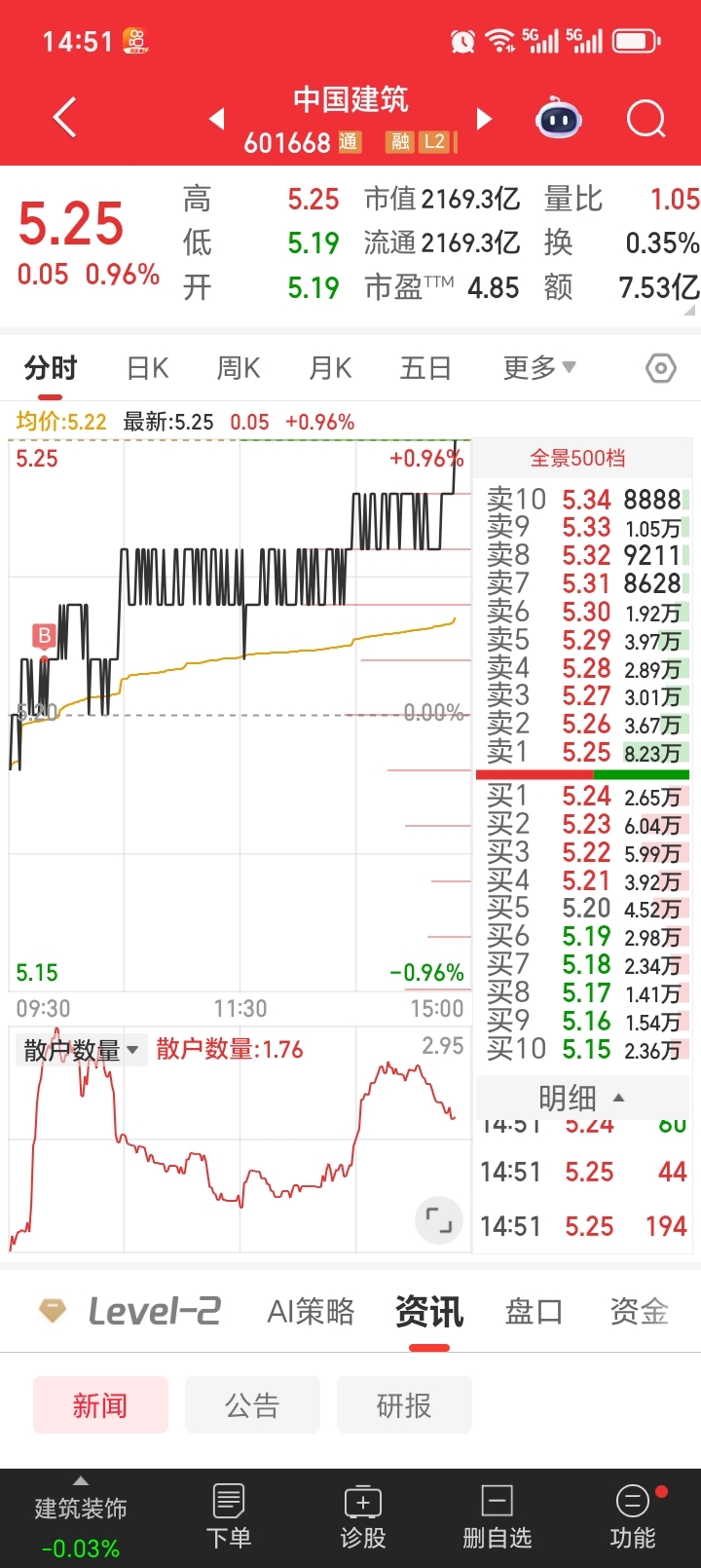 今天补了几手,目前成本5.28,本轮被套4分钱