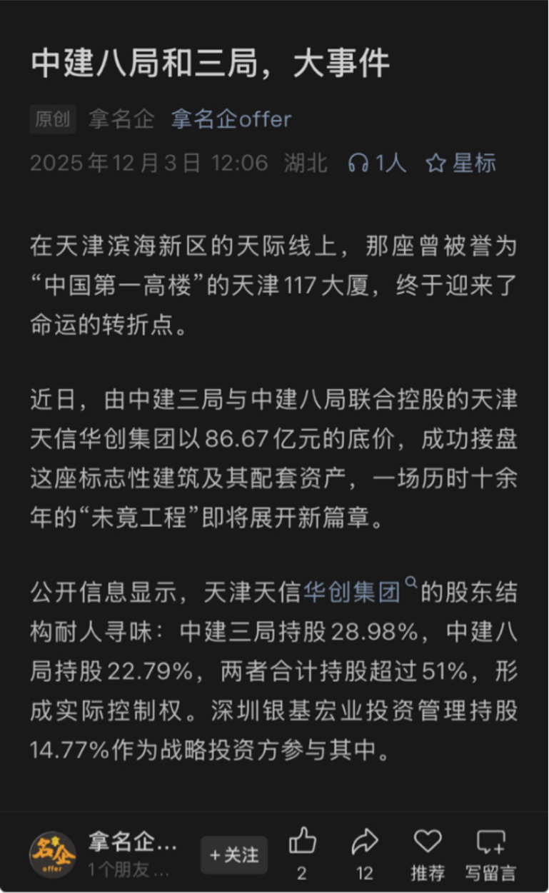 $中国建筑(SH601668)$ 貌似三局以前是施工方,这种情况会计上怎么做账?计提的坏账变投资了,八局以前也是施工方吗?哪位大哥了解?