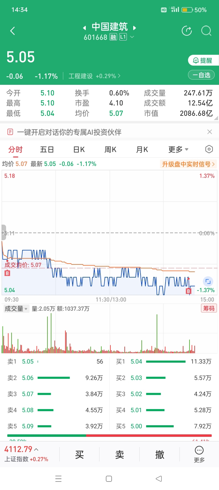 $中国建筑(SH601668)$ 5.05元抄底了,子弹已打满。