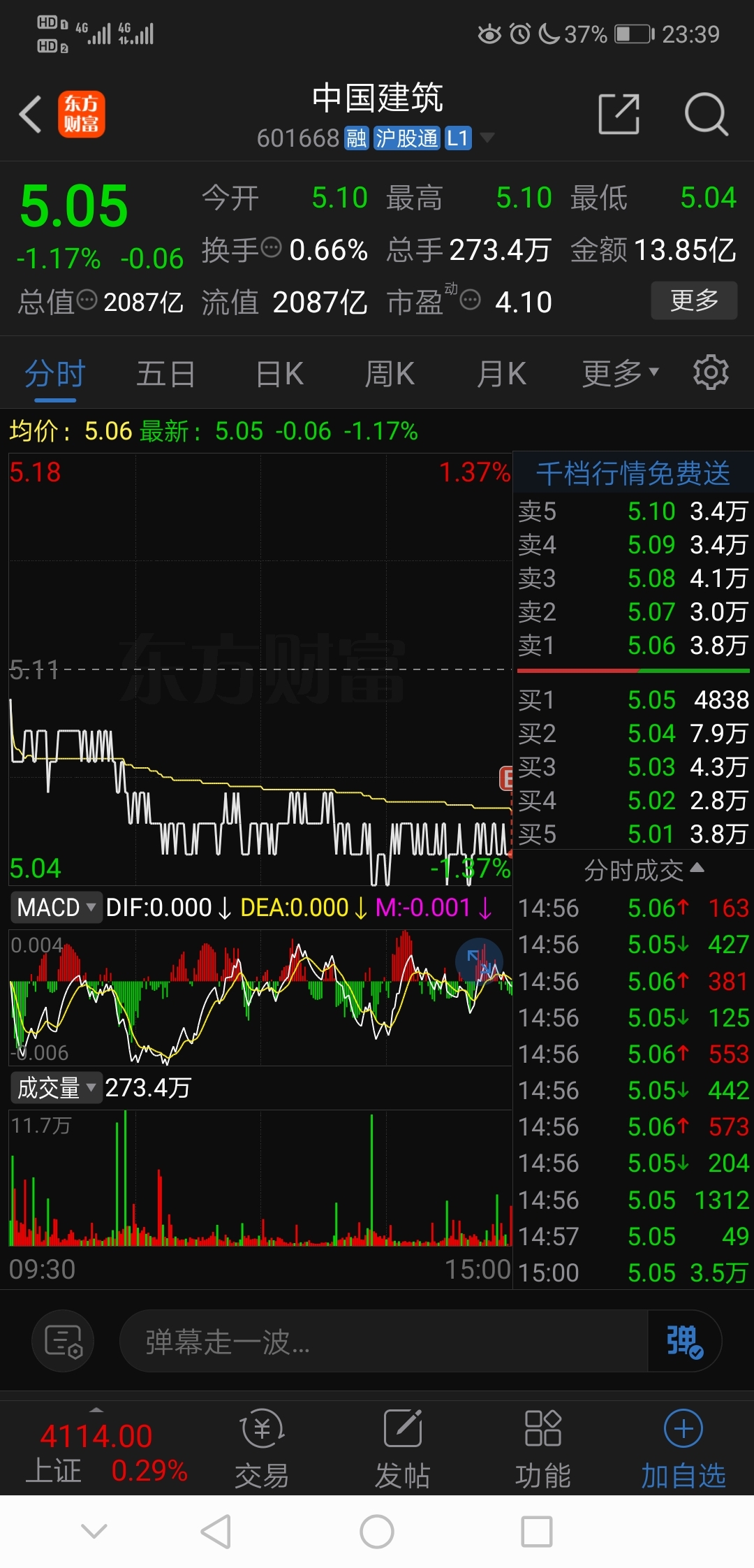 $中国建筑(SH601668)$ 对应的股息>5%了,结合这多年底部区域的位置、时间点和它估值,尾盘买了点儿,如果不是上午买了国债又逆回购了,会多买些,虽然看着下破平台,有持仓的股友可能短线止损,却进入个人中长线布局的买入区域了。深市有格力电器和周大生的市值,沪市中南传媒和广汇能源,正好多加码些中国建筑,市值两边很快就弄均衡
