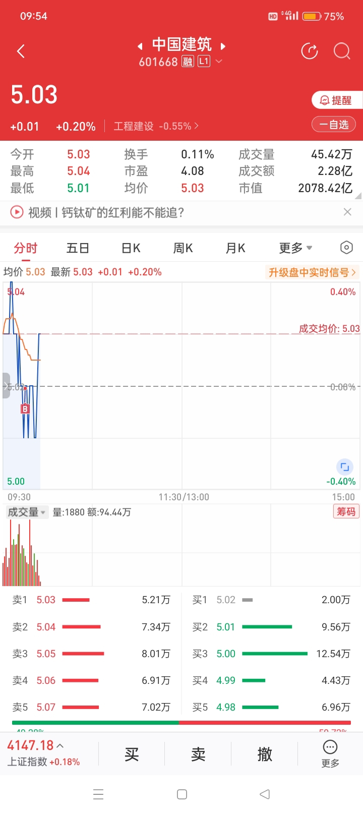 5.01元继续抄底中建。