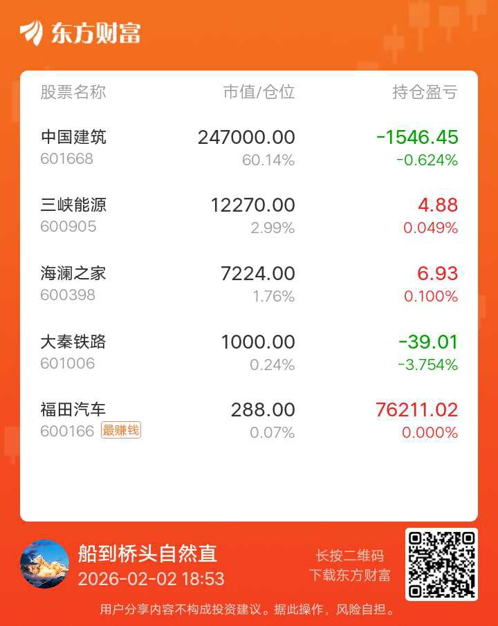 中建我不考虑做长期投资,预计到6~7月份会卖出大部分的持仓,主要做一个4~6个月的中期波段。