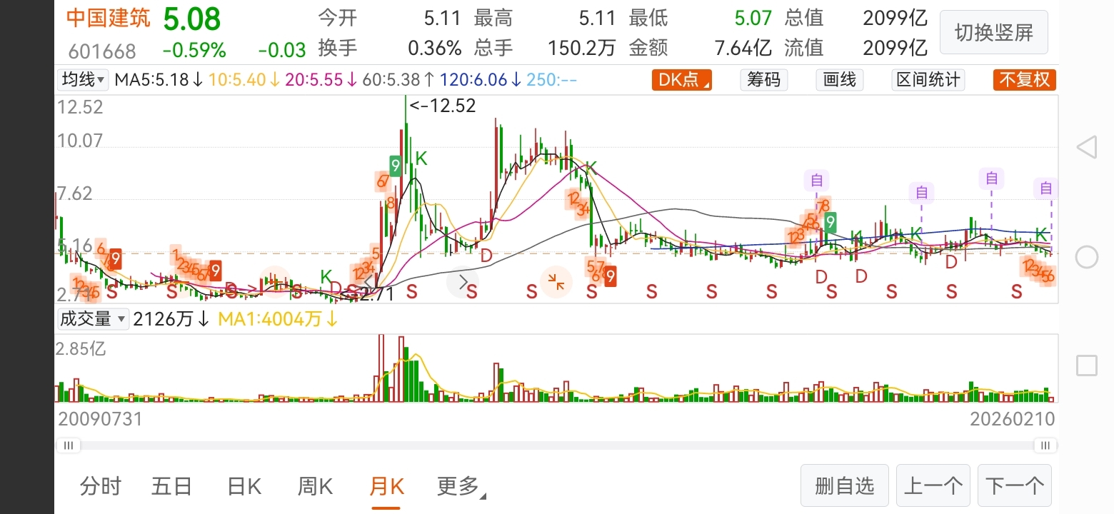 $中国建筑(SH601668)$ 月线到了箱底下沿,越跌越买。