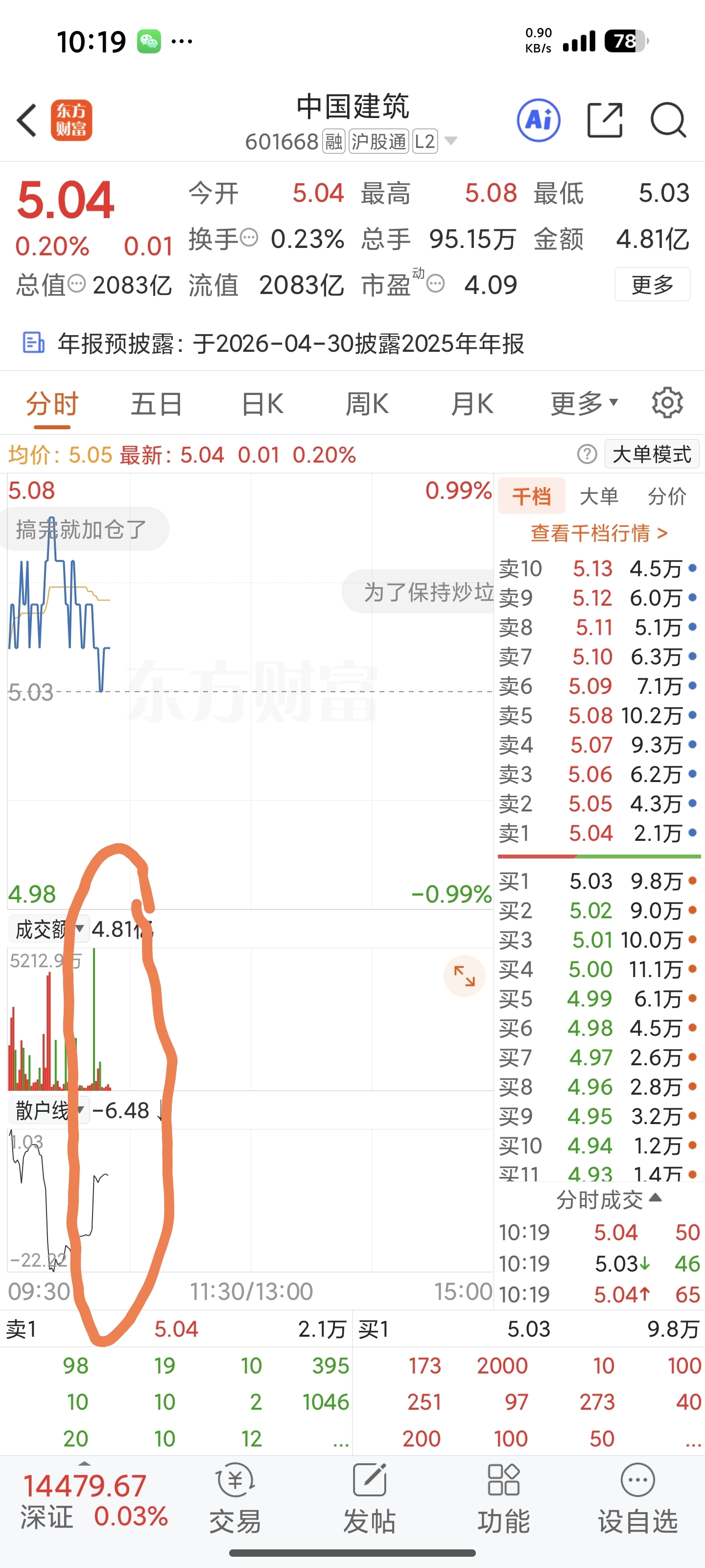 $中国建筑(SH601668)$ 散户别挂买单接盘了,旺旺突然一砸就全套进去了
