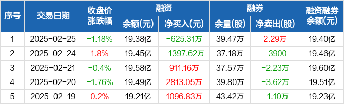 中国电建:融资净偿还625.31万元,融资余额19.38亿元(02-25)