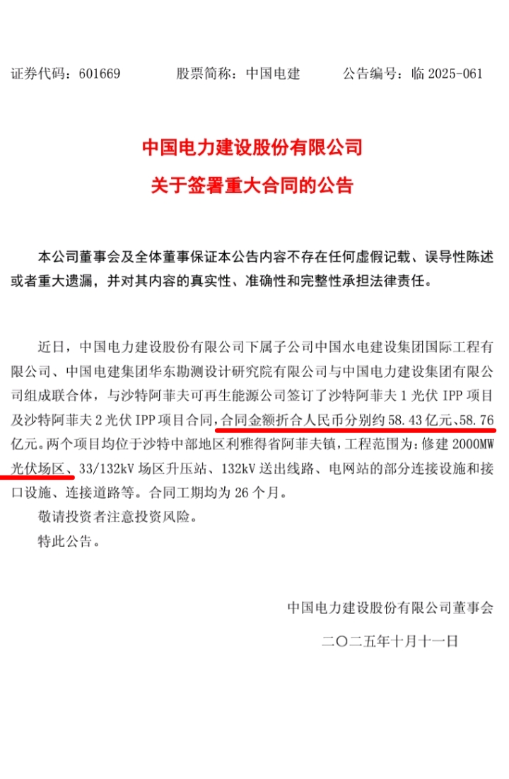 中国电建和沙特签订重大合同,今晚必须庆祝一下,利好茅台!