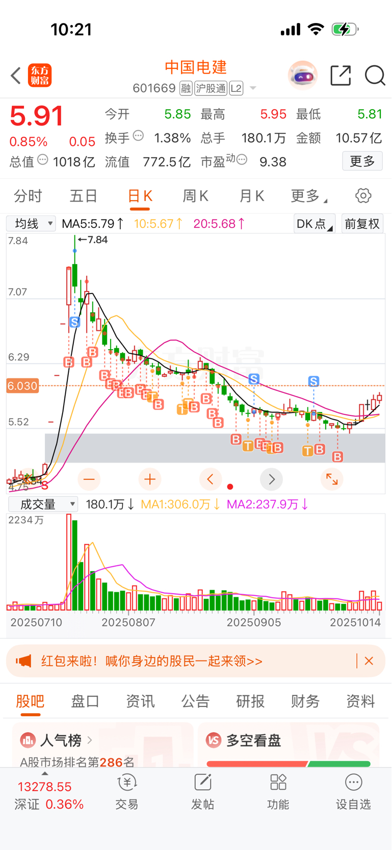 $中国电建(SH601669)$ 中国电建 离了我还有谁这么宠你!连红几天 一股没卖