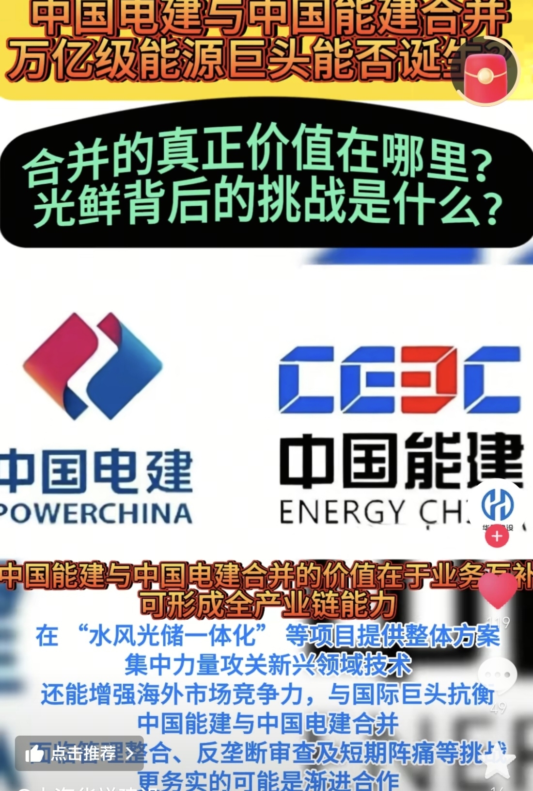 $中国电建(SH601669)$ 中国能建和电建正式要合并了