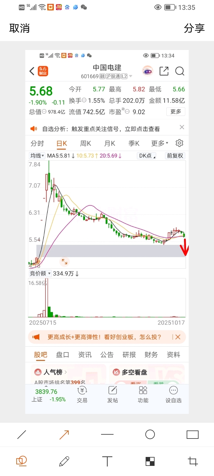 $中国电建(SH601669)$ 目测下周一开盘是这样的,欢迎来抬扛。
