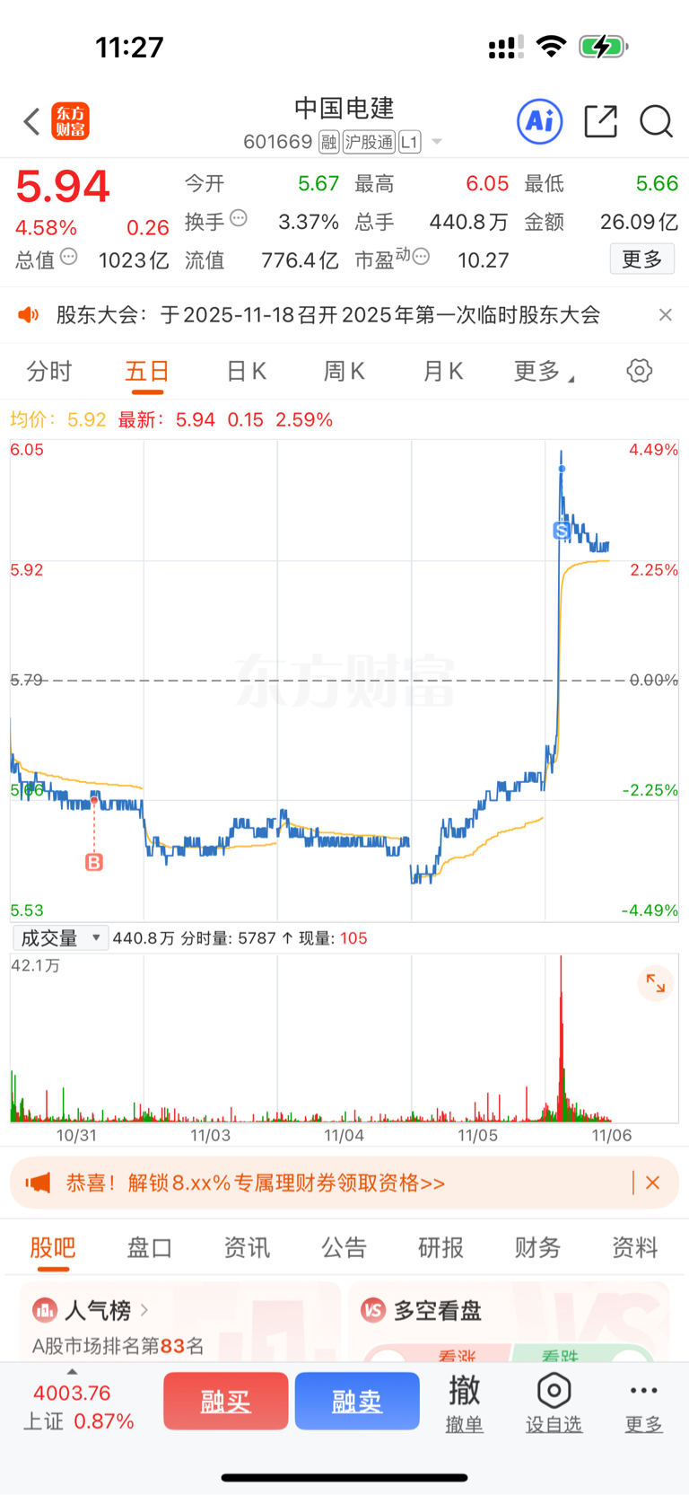 $中国电建(SH601669)$ 我卖了