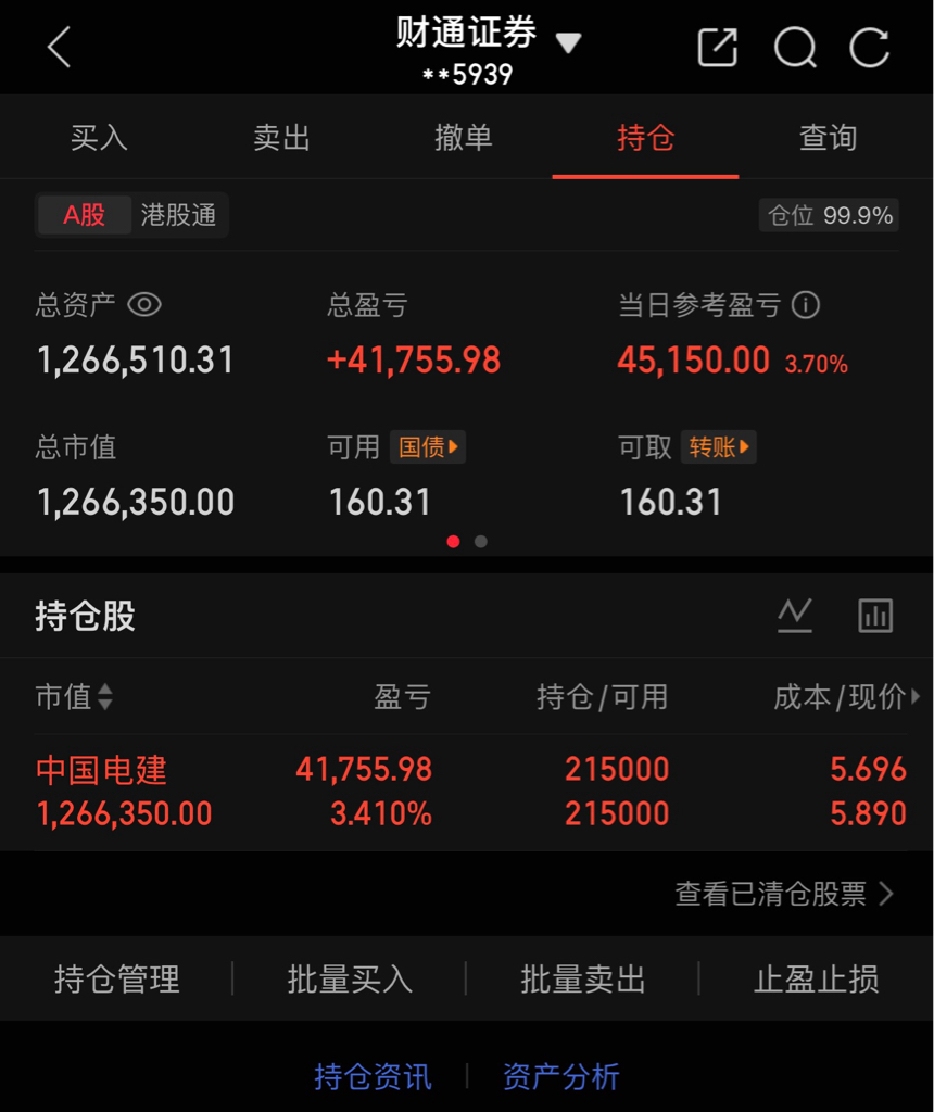 $中国电建(SH601669)$ 终于涨了,热泪盈眶。各位股友深有体会,每天我们都在经历什么?大盘涨,我们不涨;大盘跌,我们带头跌;电力板块涨,工程板块涨,基建板块涨,储能涨,风电涨,甚至中字头涨,仿佛都没有我们的事。每天一开盘,准时扣款,低开,下探,织布,收盘跌,一路阴跌。希望今天是个好的开头,电建能够走出一波向上的行情。