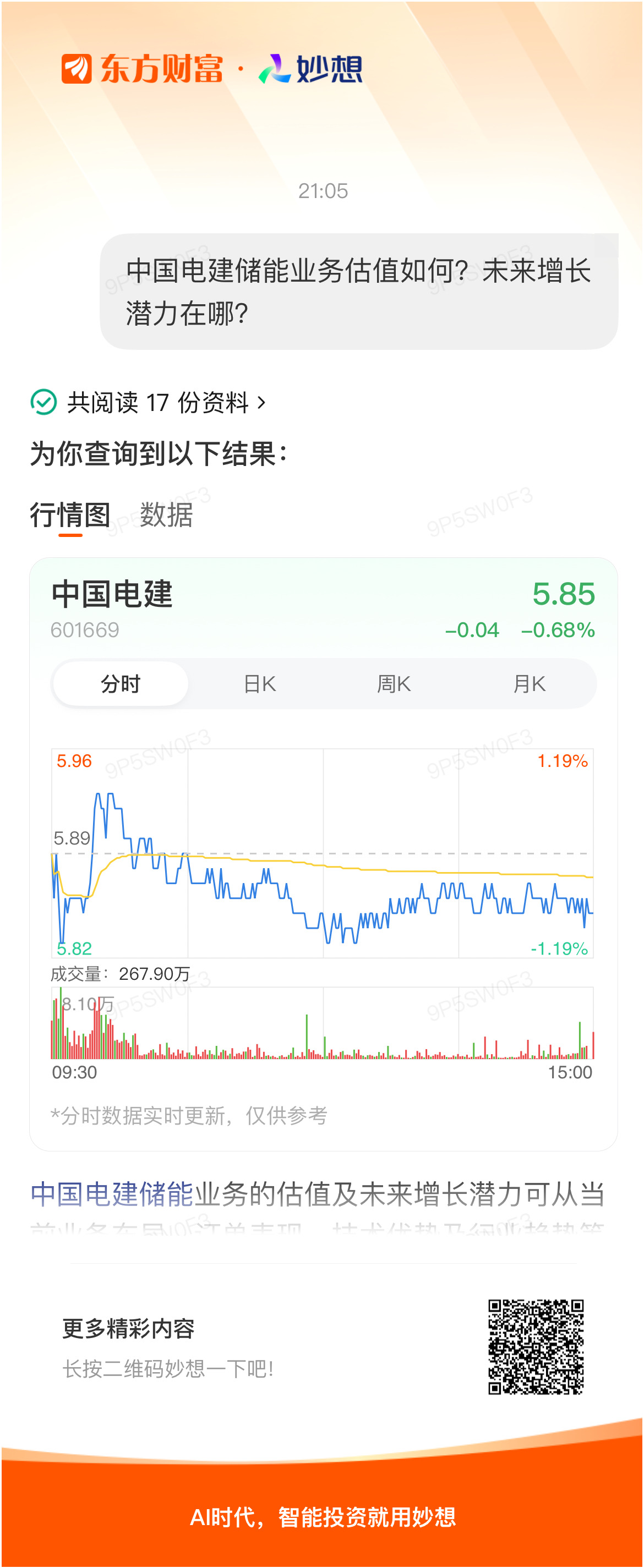 #@妙想,你怎么看?# 妙想一下:中国电建储能业务估值如何?未来增长潜力在哪?