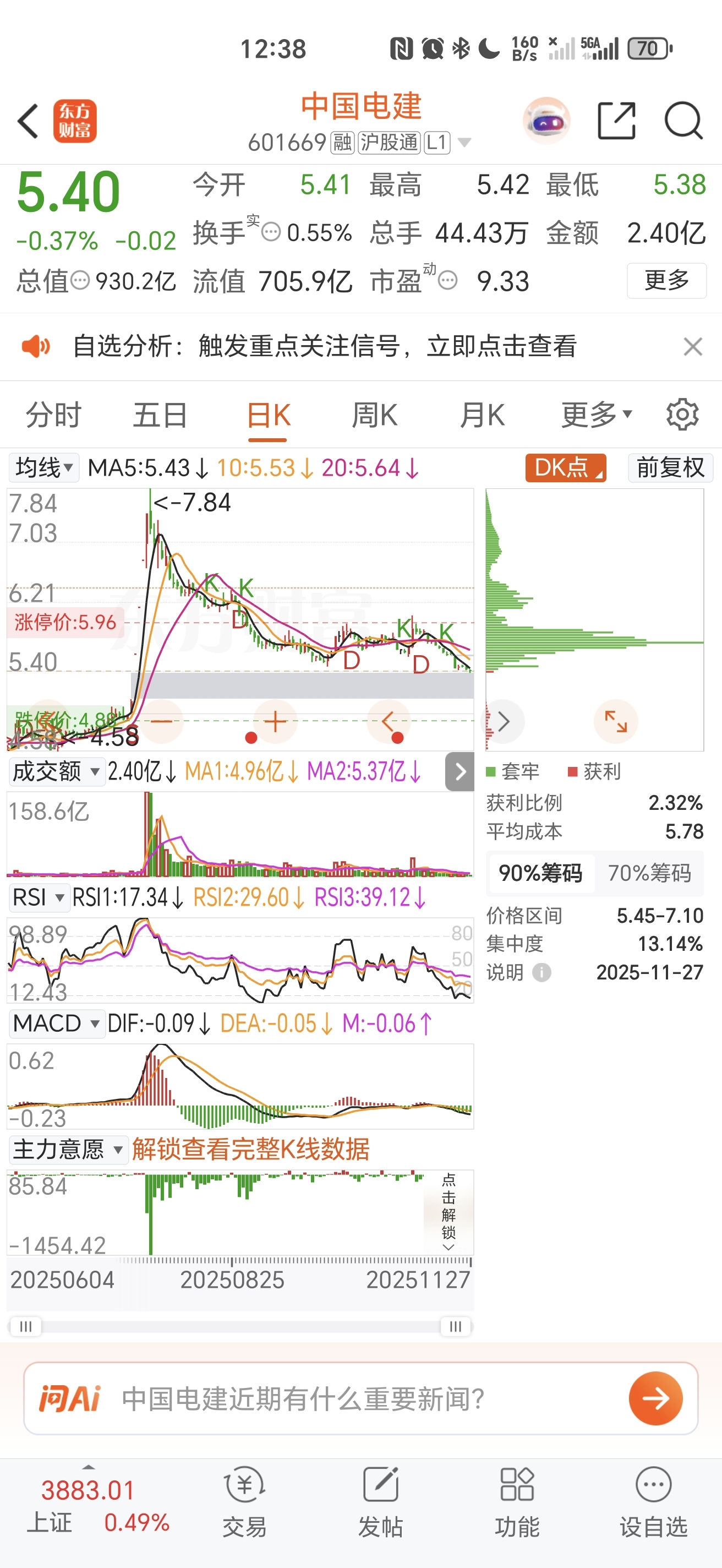 $中国电建(SH601669)$ 我们小本散户远离中字头就对了,我也是在最后一个版本开板时all in了,当天就亏麻了,气的我没在管,后面看这孙子,走退市趋势了。别的票都会不断超越新高呢,中字头新高后都是走退市趋势图。