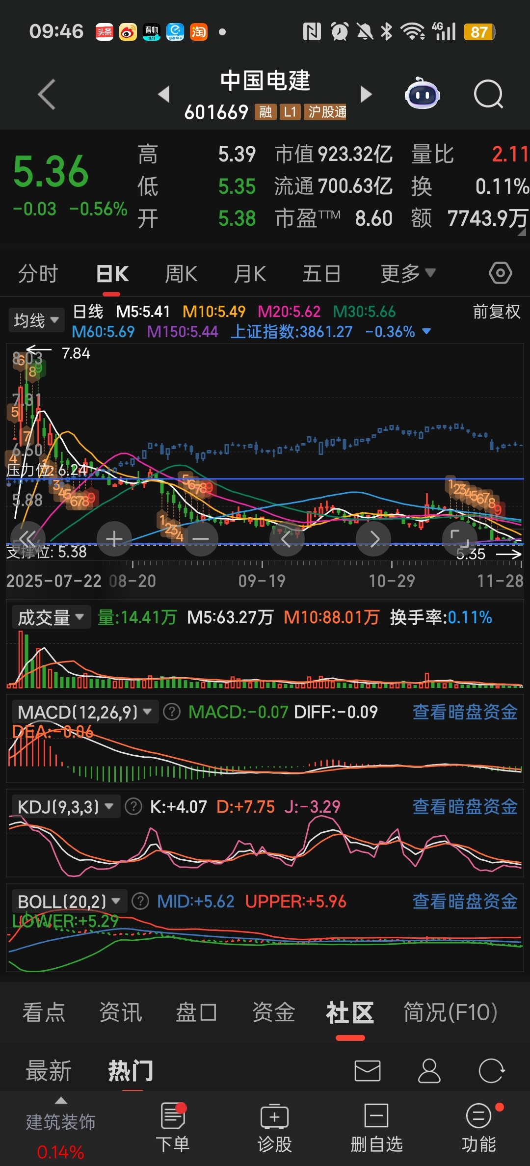 $中国电建(SH601669)$ 重要周线支撑已破