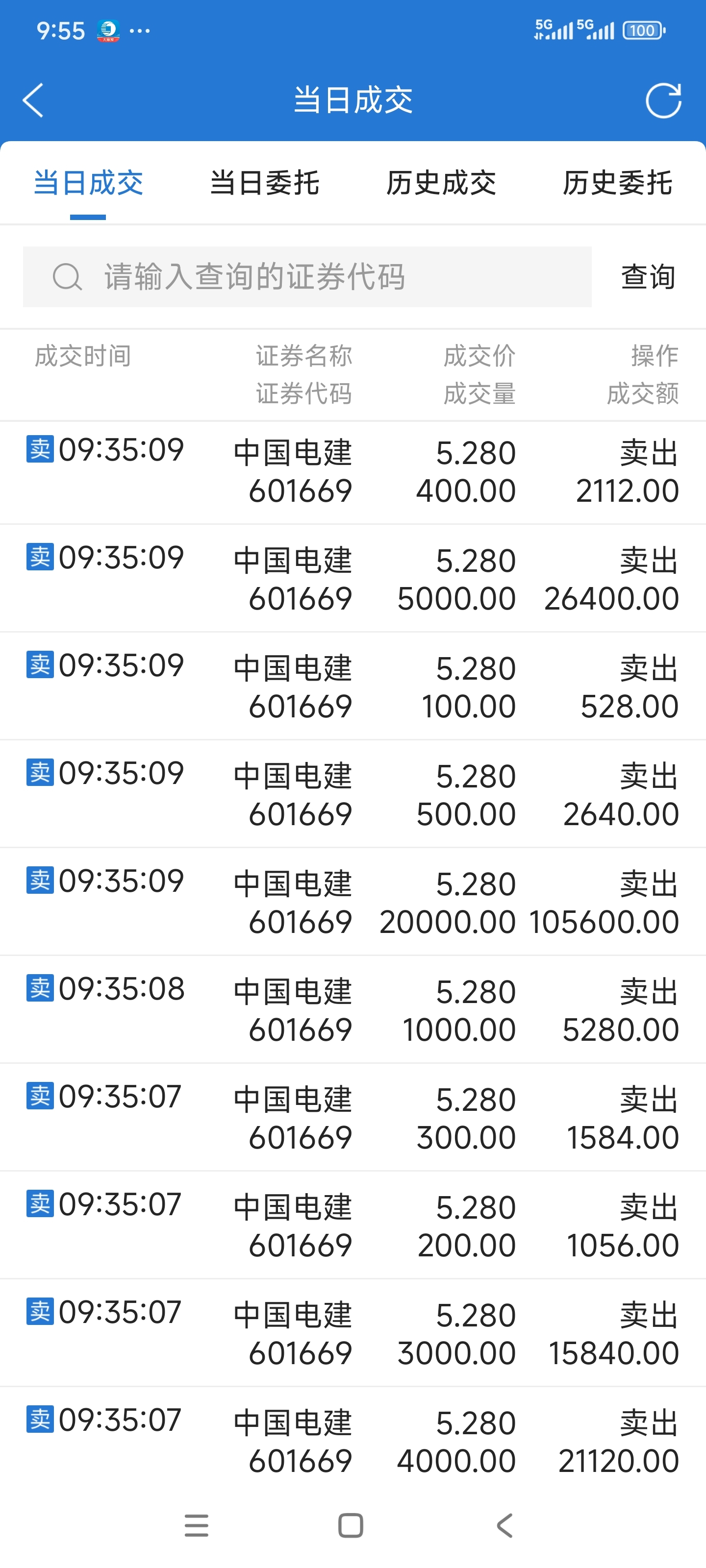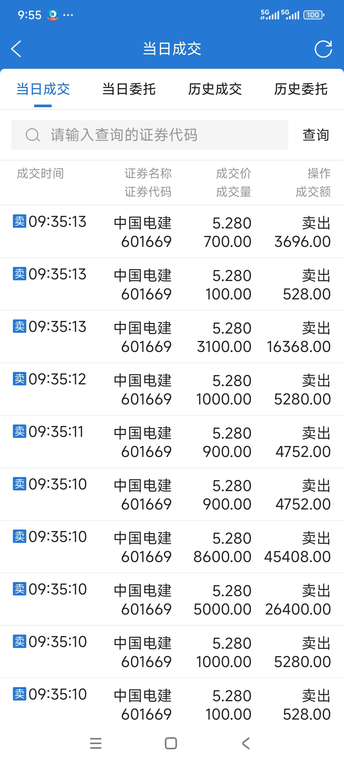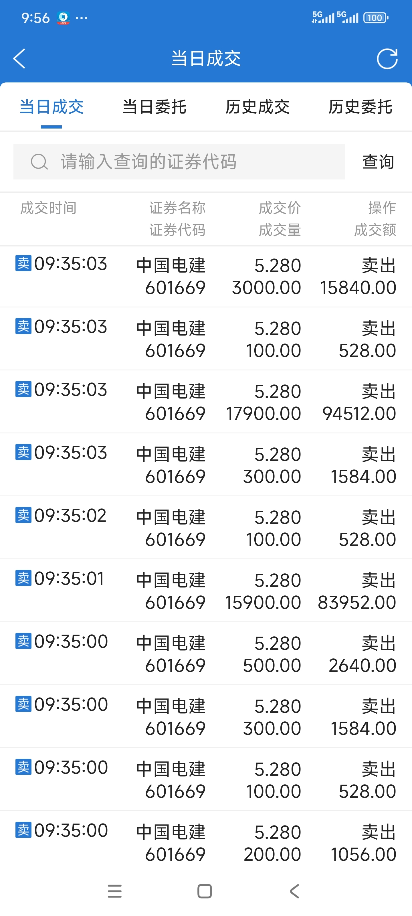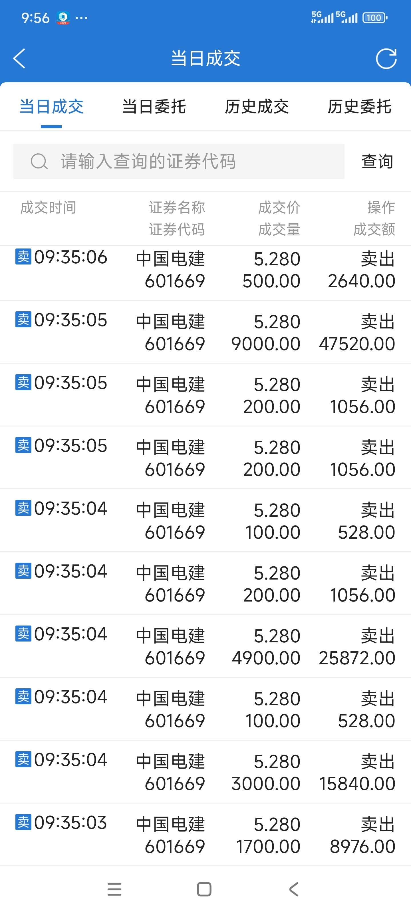 电建阴跌行情,5.28卖出12万电建