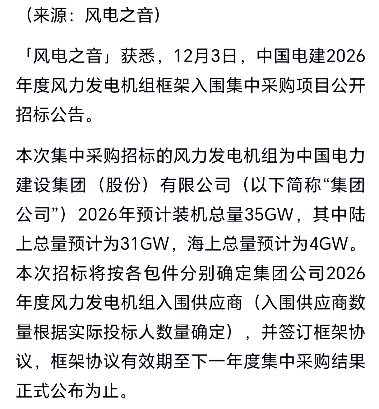 今天发了光伏招标 逆变器招标,又来风机招标了。35G瓦风机招标