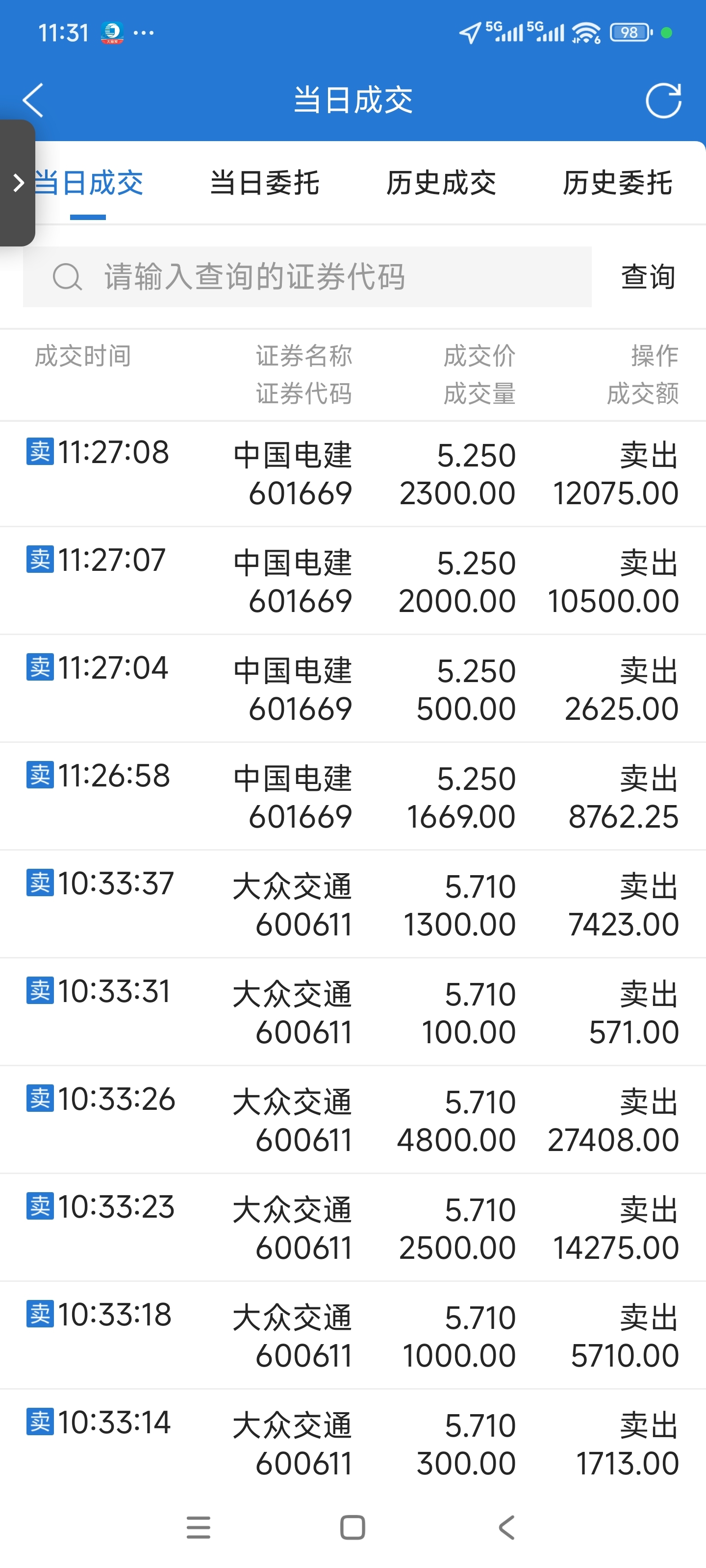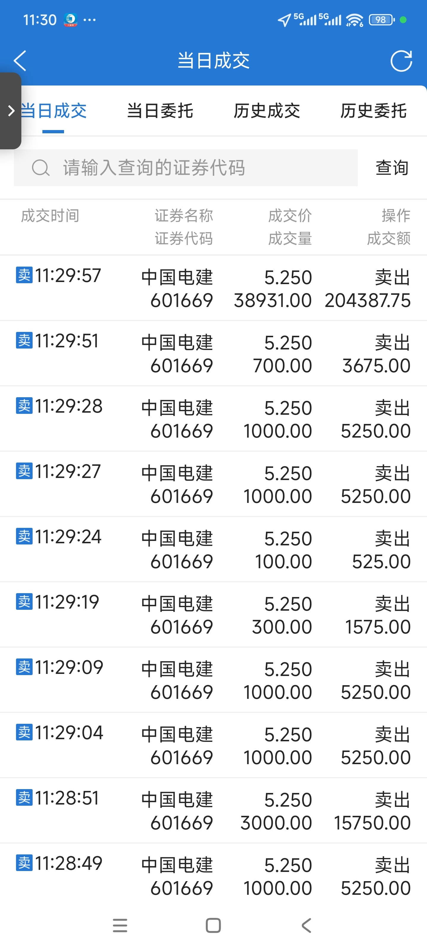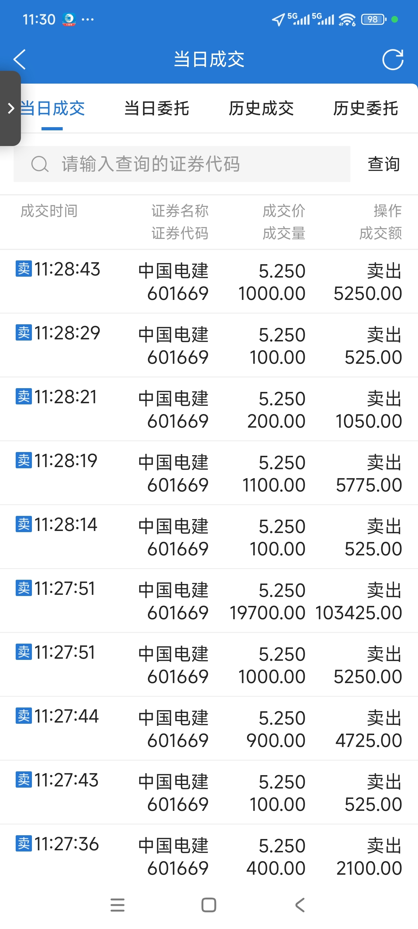电建总是阴跌难有行情,忍不住了5.25十一万股全卖了