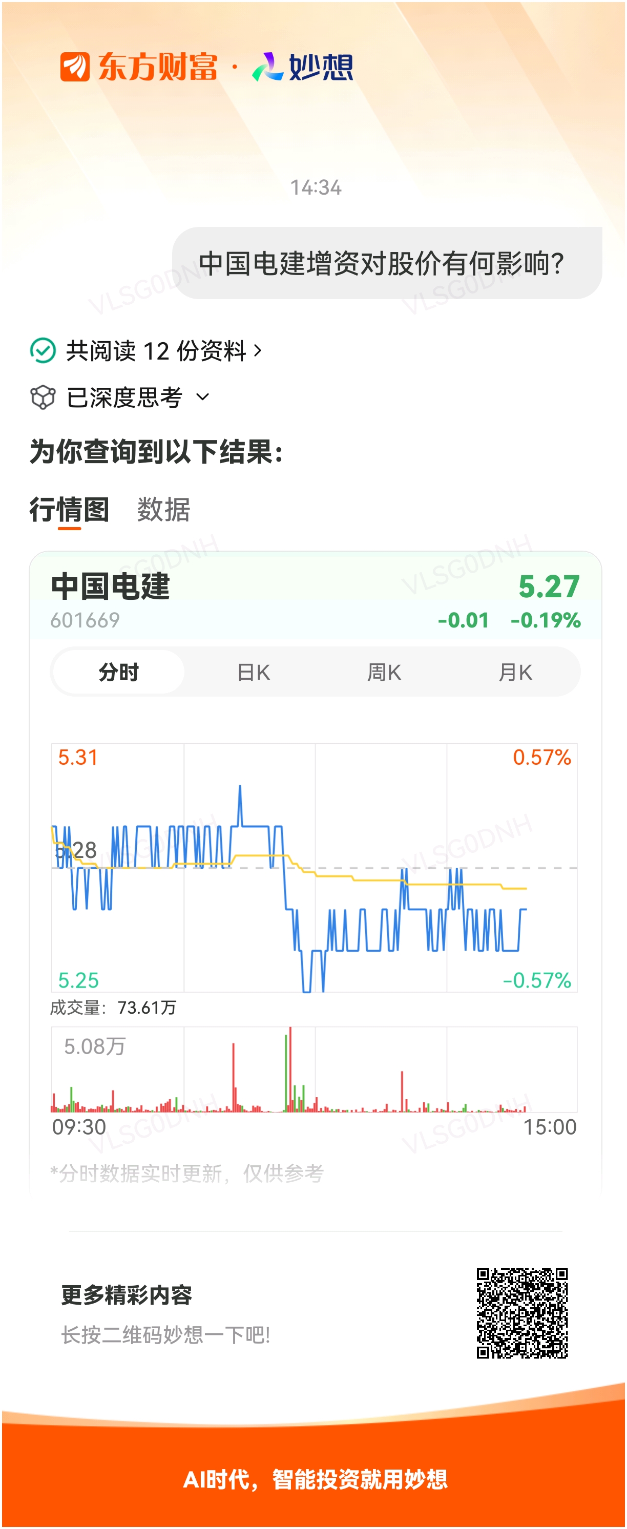#@妙想,你怎么看?# 妙想一下:中国电建增资对股价有何影响?