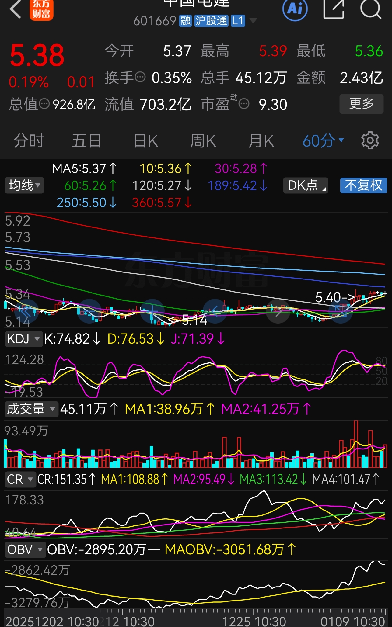 $中国电建(SH601669)$ 60分钟图形技术指标均线压制重如泰山不可逾越散户股民坚决不要去接盘上当。