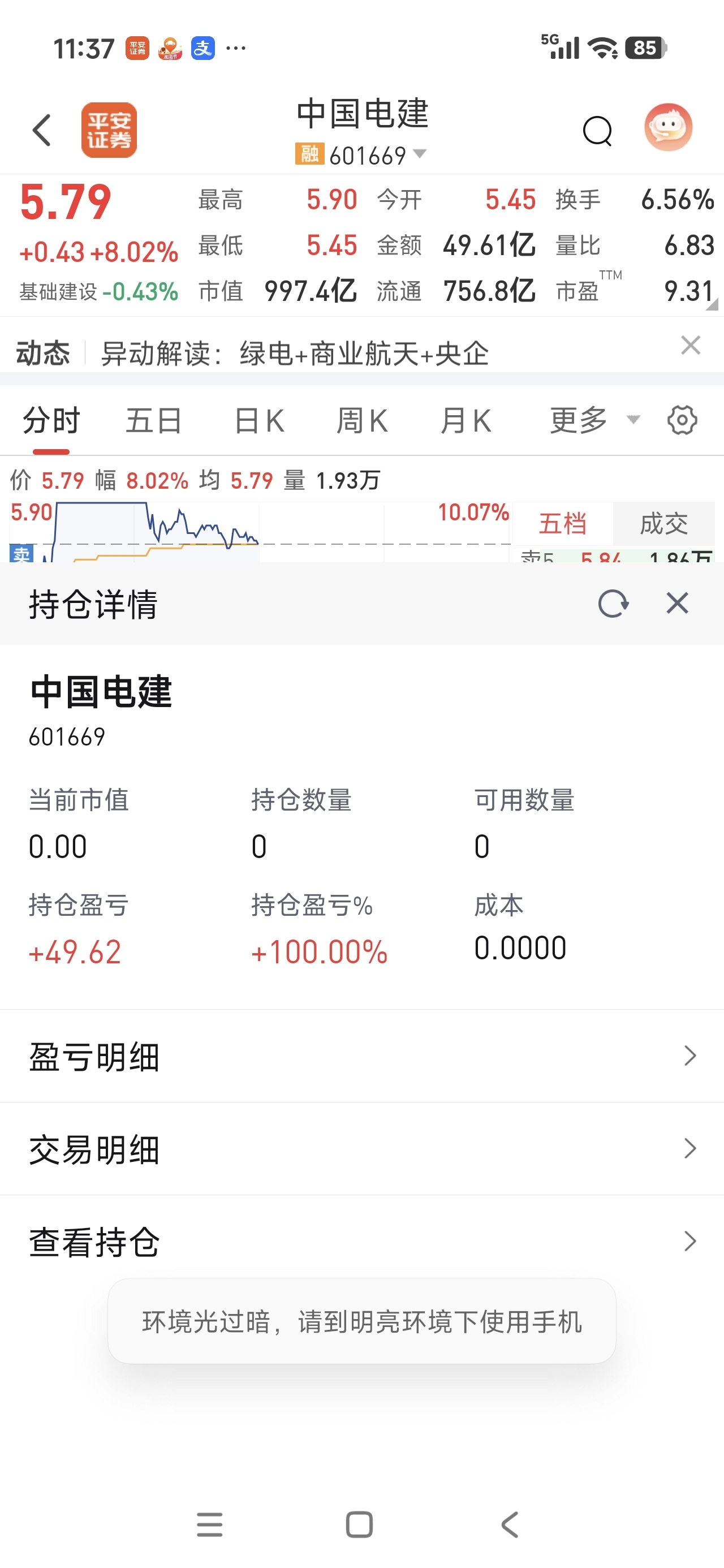 $中国电建(SH601669)$ 感谢祖先保佑,拜拜了您勒。