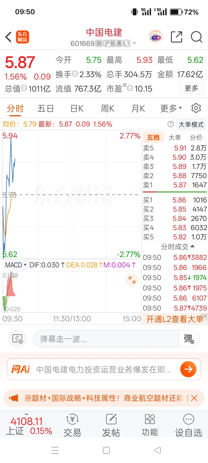 电建上车,兄弟们!5.8附近开怼,等待起飞吃肉