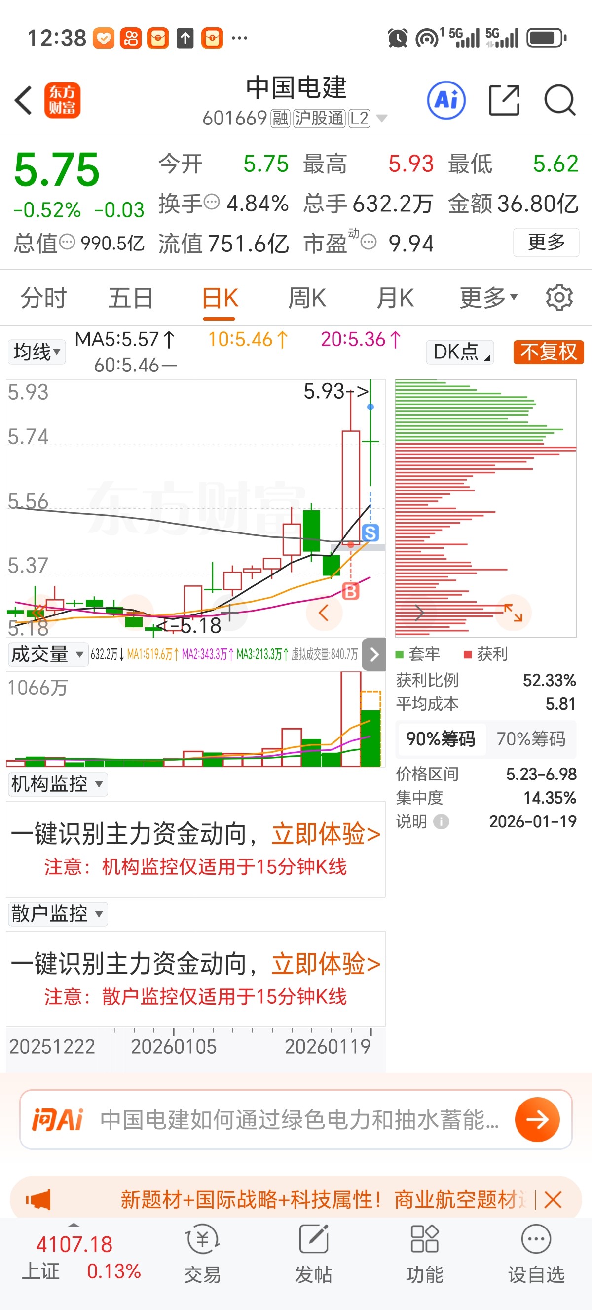 $中国电建(SH601669)$ 短期强转弱,暂时观望,补缺口后考虑入点