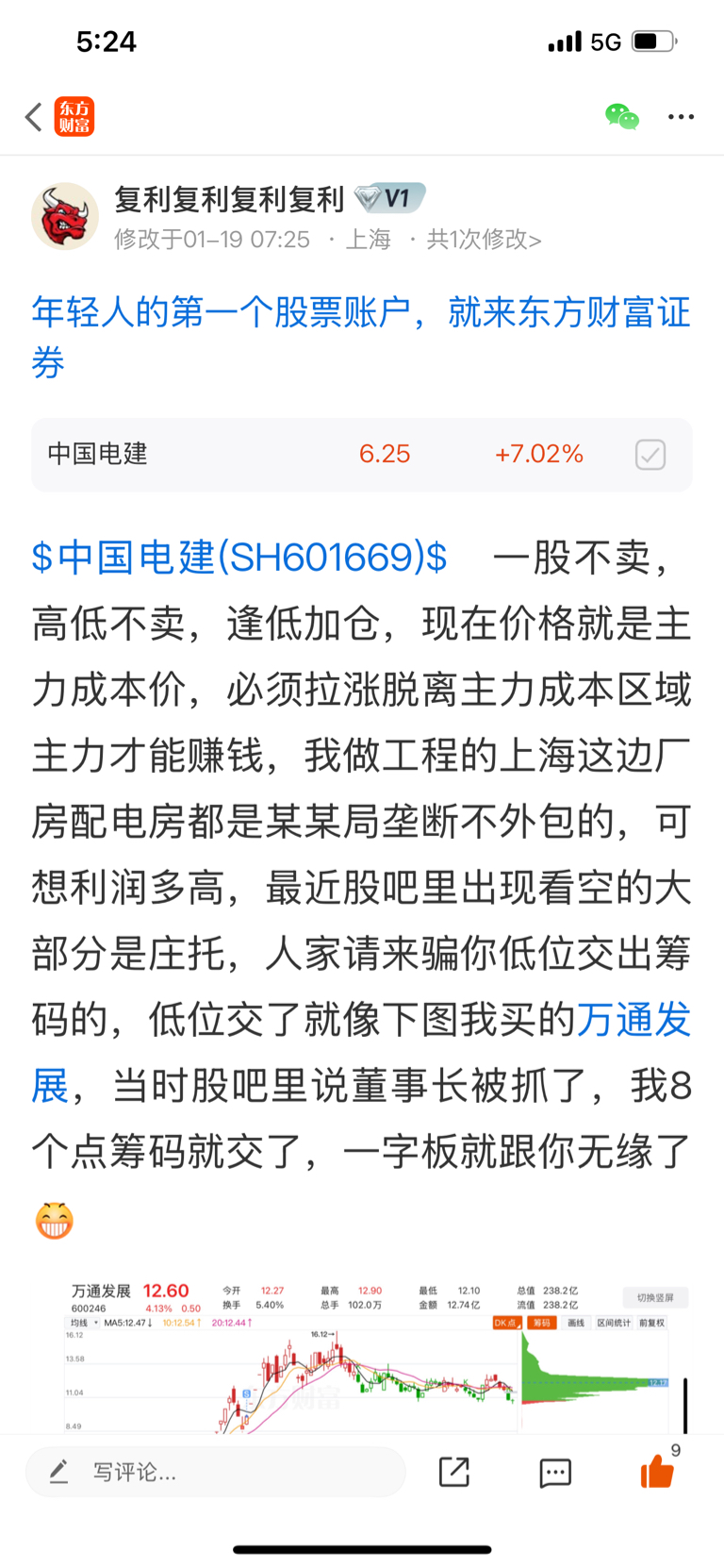 $中国电建(SH601669)$ 大家还记的我周末说的一股不卖不