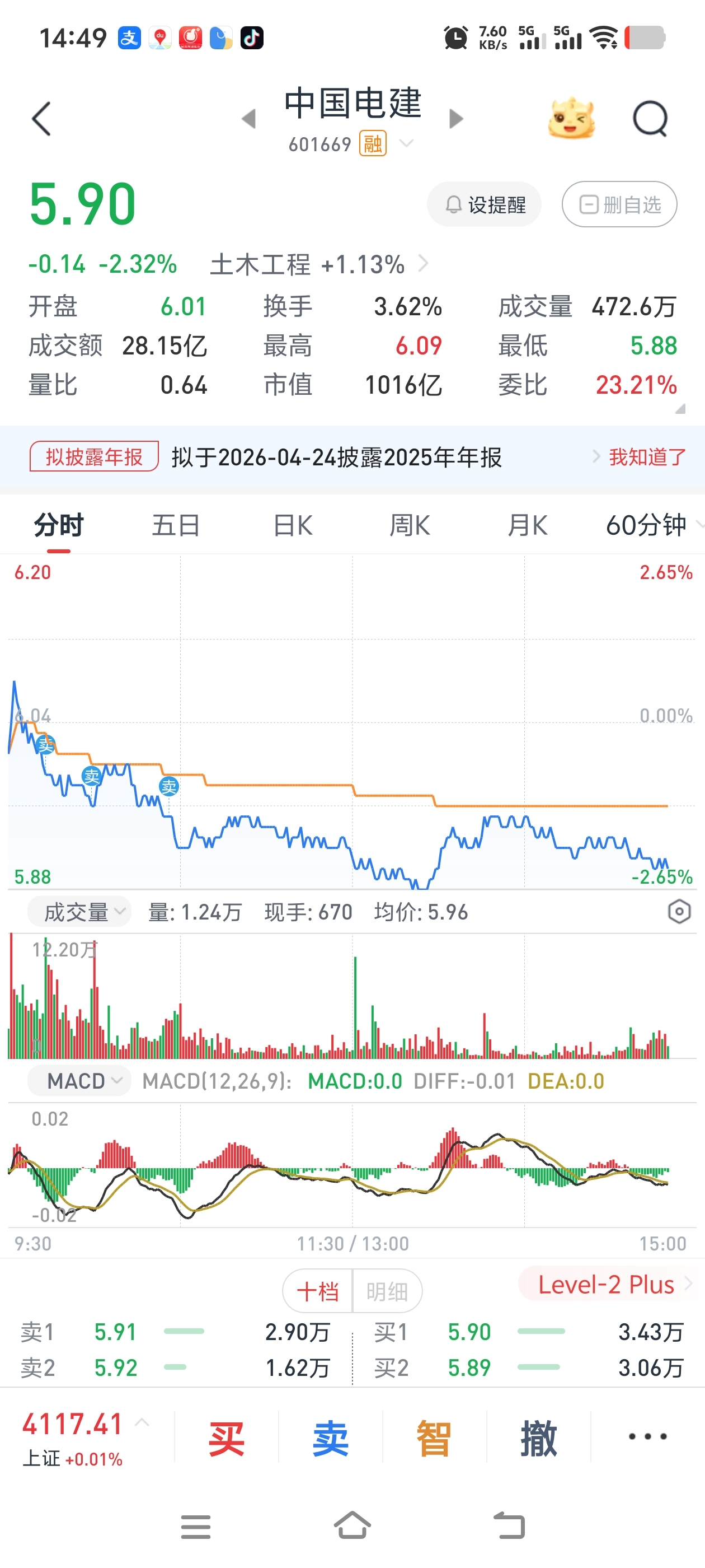 $中国电建(SH601669)$ 还好跑得快,格局到破五日均线,结果只赚了一顿火锅钱