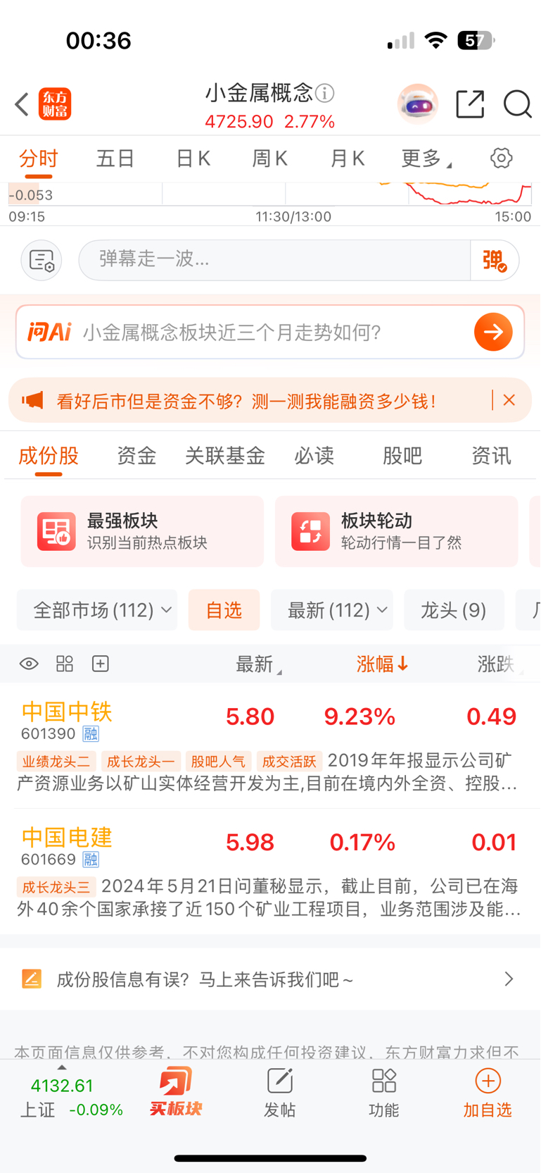 $中国电建(SH601669)$ 电建真的干啥都赶不上一口热汤,前阵子好不容易费劲扒拉加上商业航天概念,结果人家开始跌。现在又来为难股东们想怎么靠近有色,要我说名字没取好,中铁一看就知道有铁 你有啥