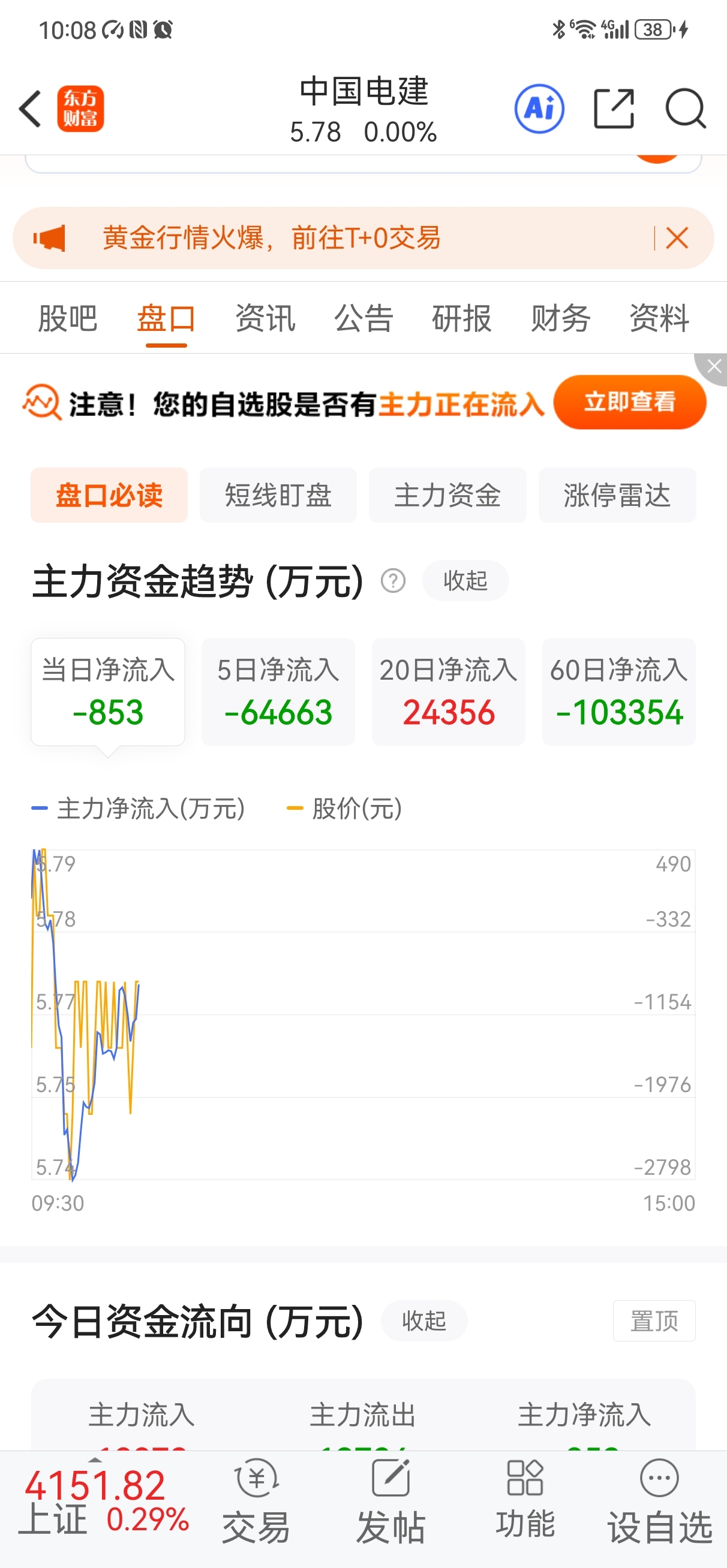 $中国电建(SH601669)$ 五天出货六个多亿 横盘是再出出主力低位买的,这两天主力还要出四五个亿吧!!!