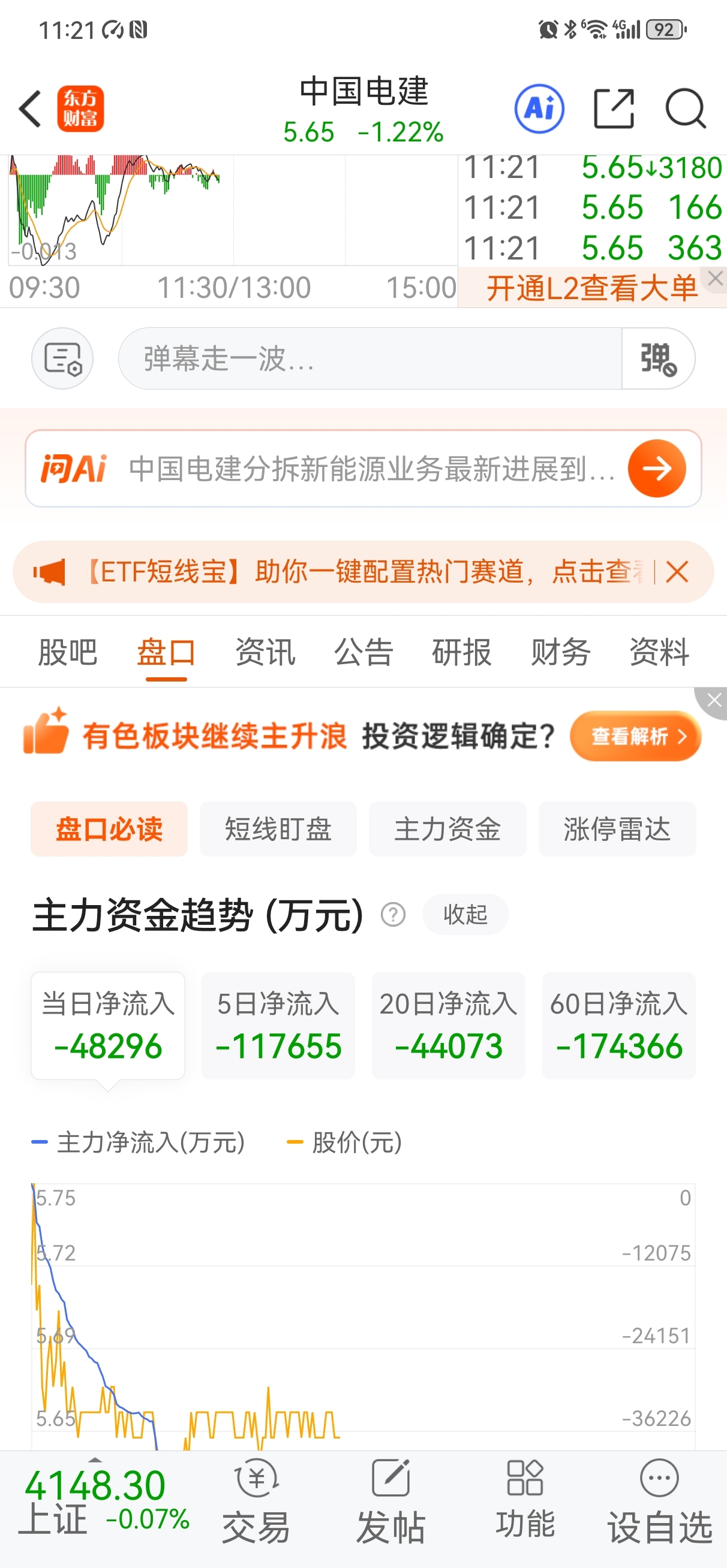 $中国电建(SH601669)$ 一阵子又流出几千万