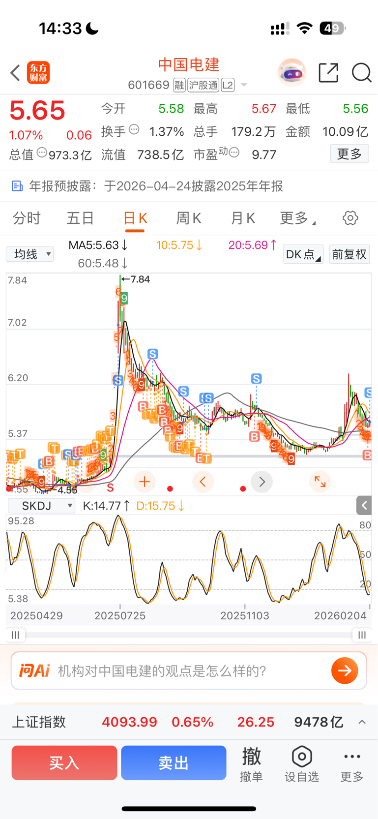 $中国电建(SH601669)$ 昨天买今天卖,里面都是大资金在做几分钱的T,小散有赚就得跑。