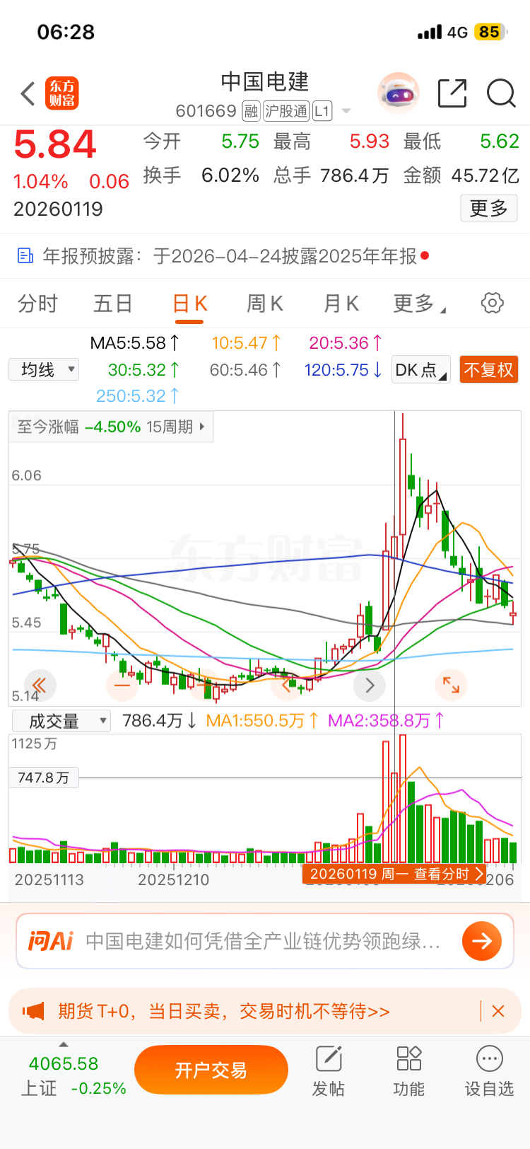 $中国电建(SH601669)$ 5.45是1月11日开始的这波上涨行情的起涨点,从周五的走势来看,已经获得了有效的支撑。周一如果能平开或者高开,则极有可能重启一轮升势,给大家发个过年红包哈。